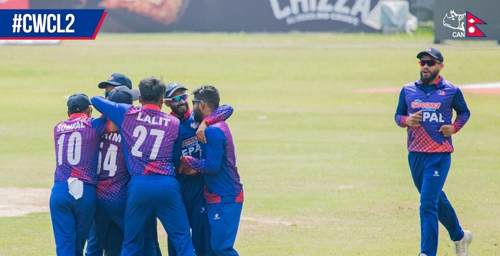 यस्तै, ओपनर आसिफ शेख शून्य रनमै आउट हुँदा कुशल मल्लले ५ रन, कप्तान रोहित पौडेलले १६ रन, दीपेन्द्रसिंह ऐरीले रन बनाए ।