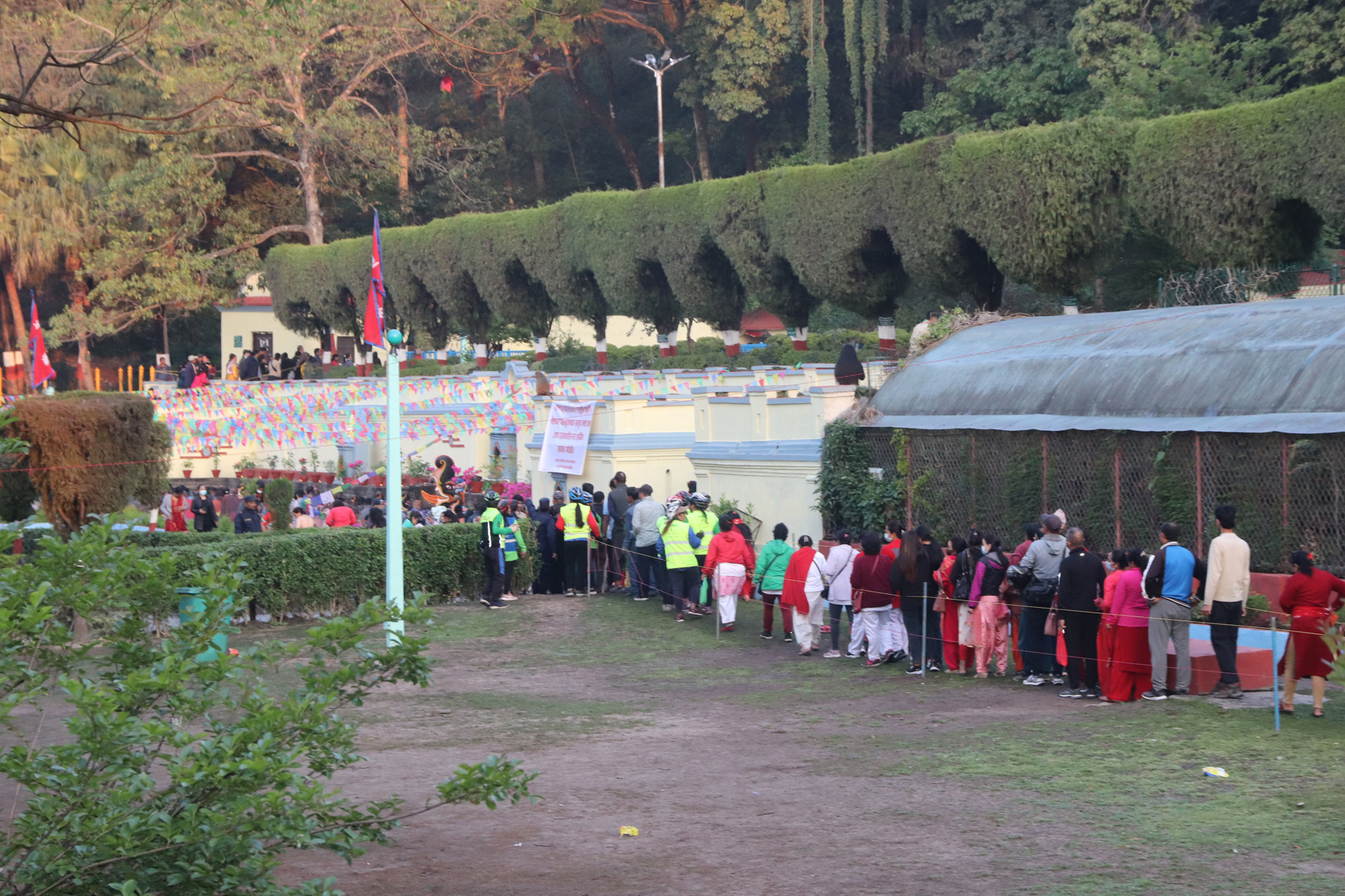 चैत शुक्ल पूर्णिमाका दिन काठमाडौँ बालाजुमा अवस्थित बाइसधारा मेलामा भक्तजनहरु स्नान गर्नका लागि लामबद्ध हुँदै ।