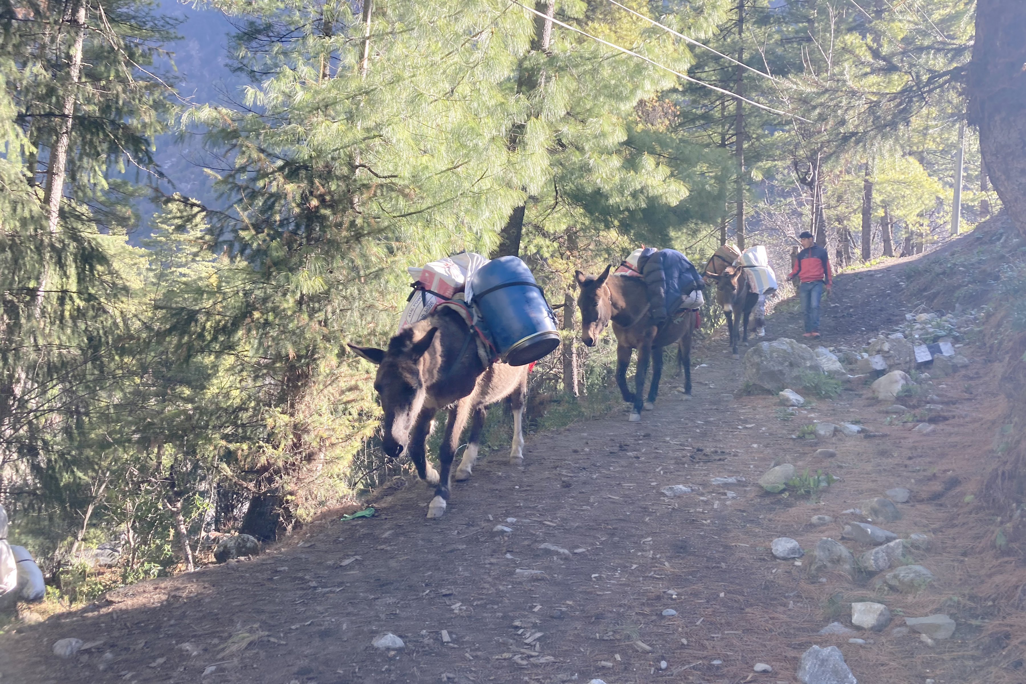 मनाङको सदरमुकाम चामे कोतोबाट खच्चडमा सामान ढुवानी गरी नार फु लगिँदै । सडक सञ्जालबाट अलग रहेको नार्पभूमिवासीलाई खाद्यान्नलगायत विकास निर्माणका सामाग्री ओसार्न खच्चडको भर पर्नु परेको छ ।