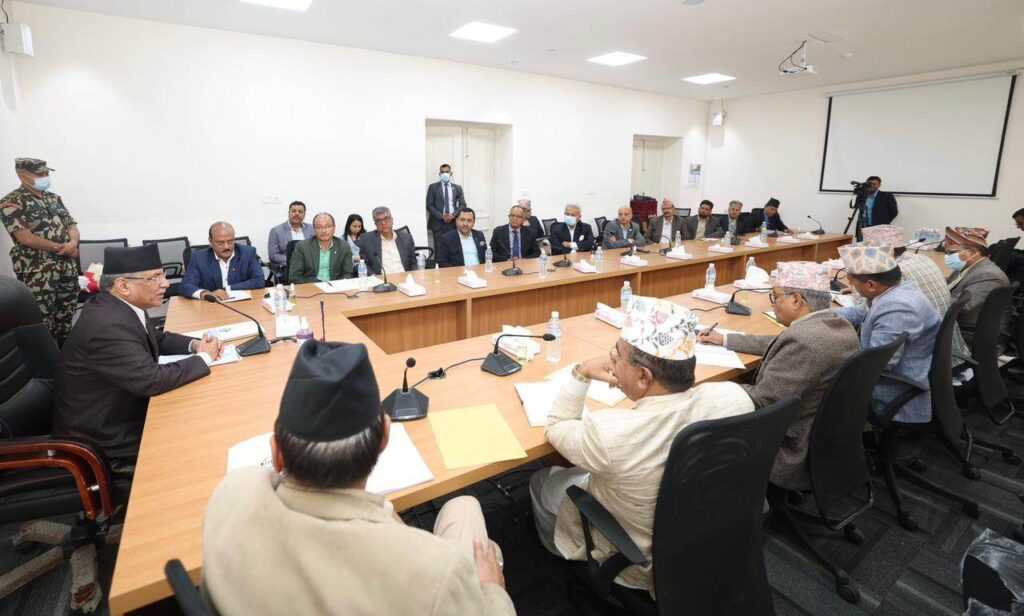 ‘मैले नै यो बैठकको आयोजना गरेको हुँ। अर्थतन्त्रमा देखा परेको दवावलाई कम गर्न लगातार छलफलमा छौँ। बैंकको ब्याजदर घटाउने उपायहरू खोजिरहेका छौँ। हामी छिट्टै एउटा निष्कर्षमा पुग्छौँ,’ बैठकमा प्रधानमन्त्रीले भने, ‘विदेशी मुद्रा सञ्चितिको दवावबाट अलि सजिलो महशुस हुँदैछ। अहिले विदेशी मुद्रा सञ्चिति र विप्रेषणमा सुधार आएको छ । बजेट बनाउनुअघि निजी र सरकारी क्षेत्रका प्रतिनिधिहरूसँग बृहत छलफल गर्ने सोच्दैछु। हामीले एकअर्कालाई आरोपित गरेर समस्या समाधान हुँदैन, सरकार र निजी क्षेत्रले एकले अर्कोलाई सहयोग गरेर मात्र अर्थतन्त्रको चुनौती र दवावलाई सकारात्मक दिशामा लैजान सक्छौँ ।’